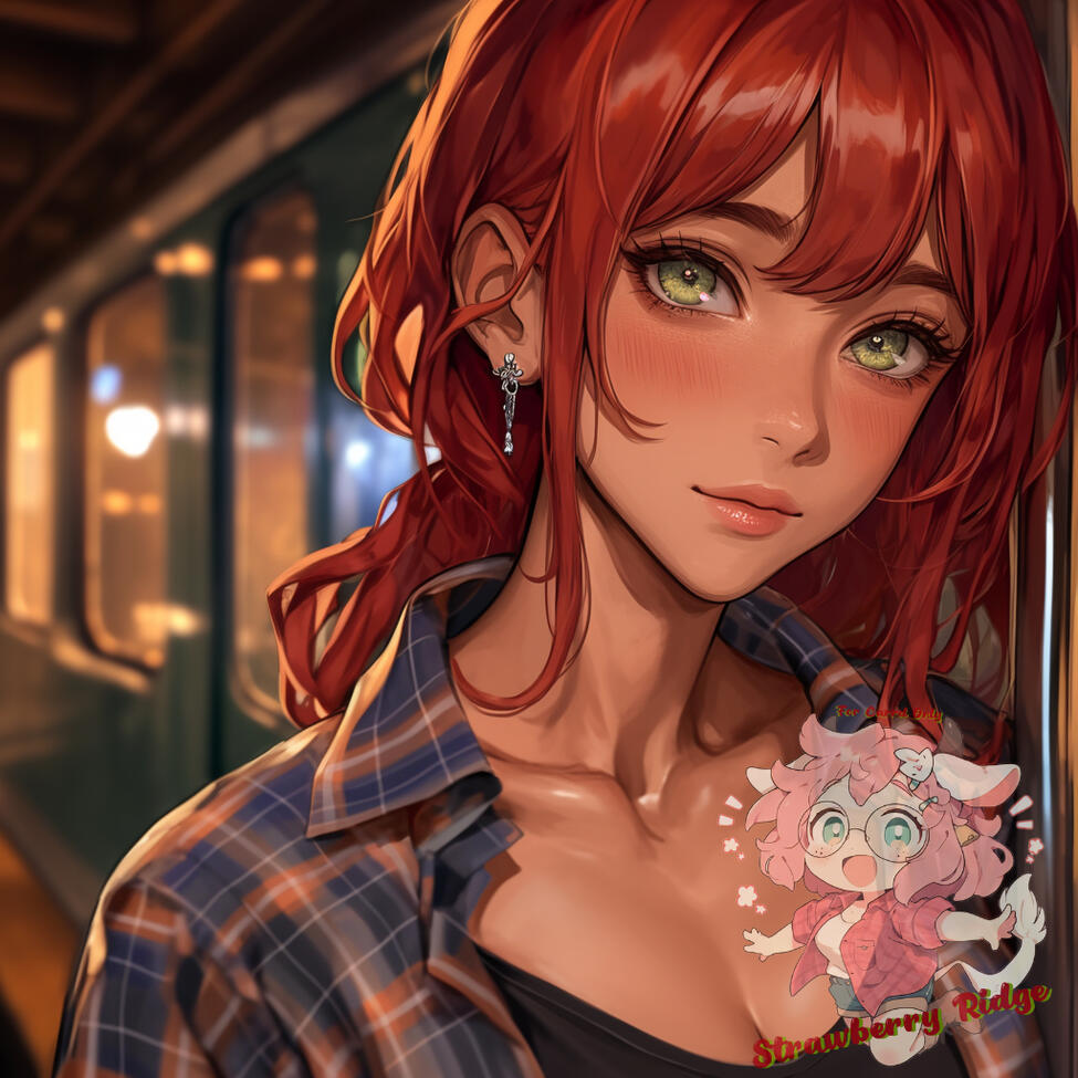 Franny was a pretty, soft female who had short brown hair she'd curl and dark red eyes. Her makeup was brown tones with a sharp cat eye and she had sharp fangs.