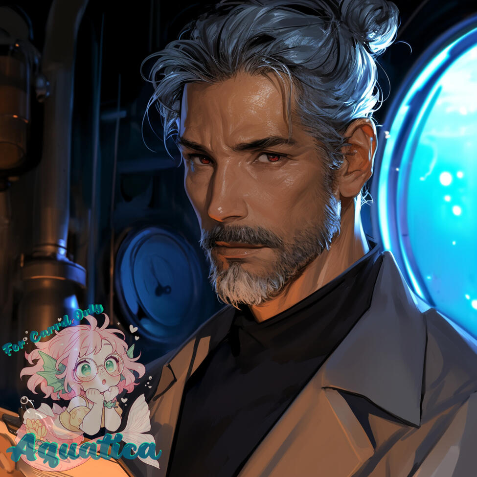 A tall, pale masculine man with grey hair, that he slicks back, and bright red eyes. Desmond has a greying black anchor beard with sideburns, a scar going from his hairline down to his left eye.
